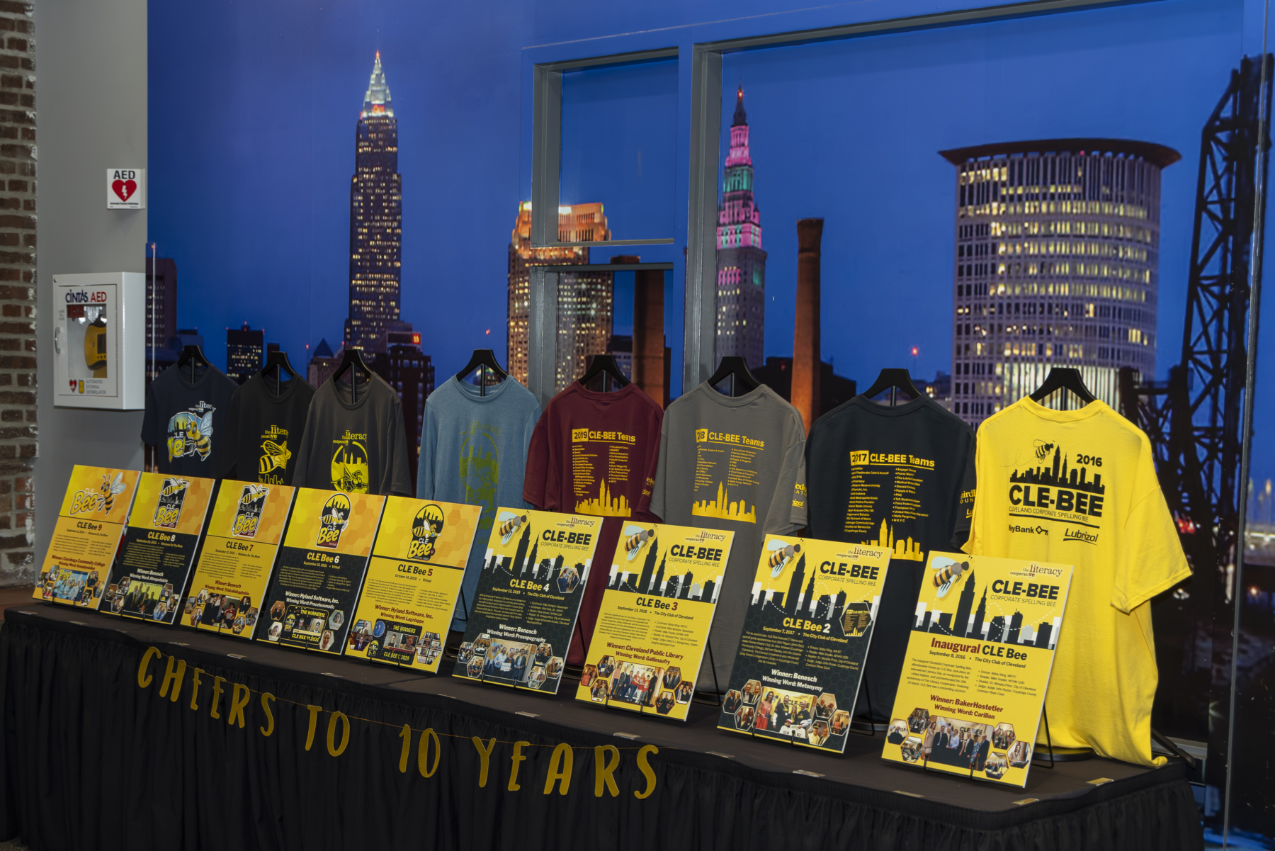 The CLE Bee 10 trophy was awarded to Youth Opportunities Unlimited. Their winning word, “solecistic,” secured their victory. Congratulations also to Lubrizol, News 5, and Cleveland Magazine for placing in the top 4 and making the final round so thrilling.