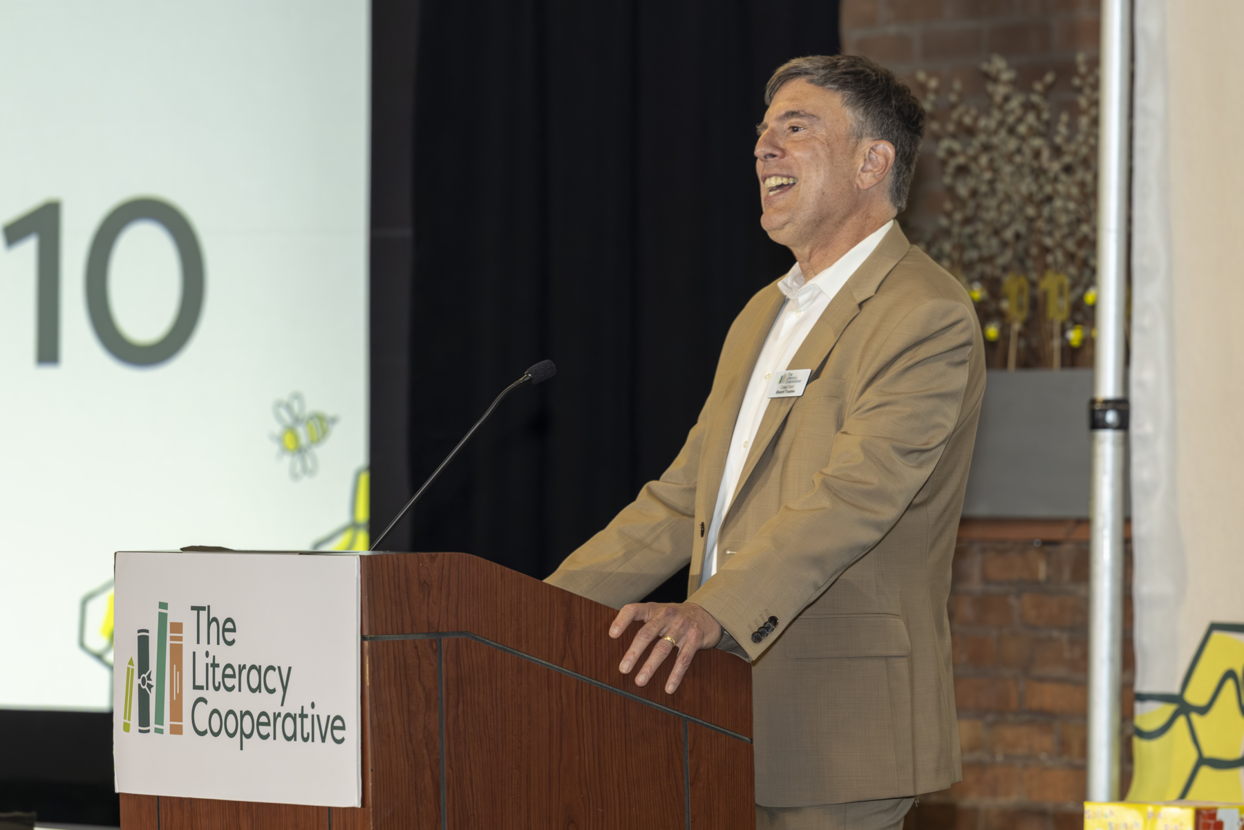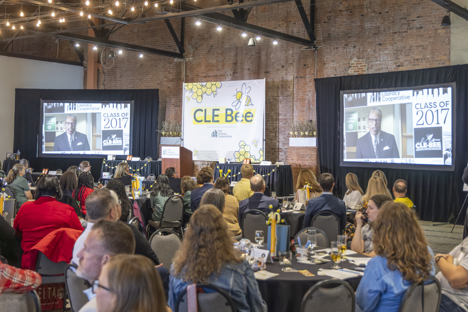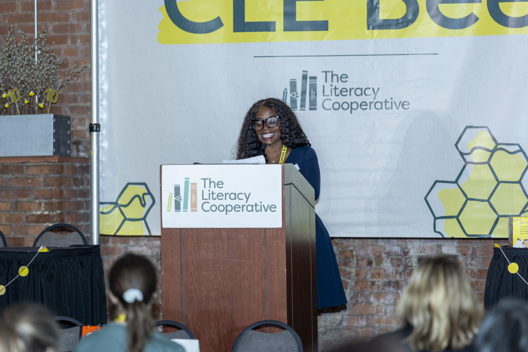 The evening began with a lively cocktail hour, setting a tone of excitement and camaraderie among the teams and guests. Board Chair Craig Dorn kicked off the main program with a warm welcome, emphasizing the collective impact of everyone in the room and introduced a video montage of the best memories from every CLE Bee since 2016. Watch it here! Bob Paponetti, President & CEO of The Literacy Cooperative, took the stage sharing Cuyahoga County’s troubling early literacy statistics and the organization’s solutions to address low literacy.