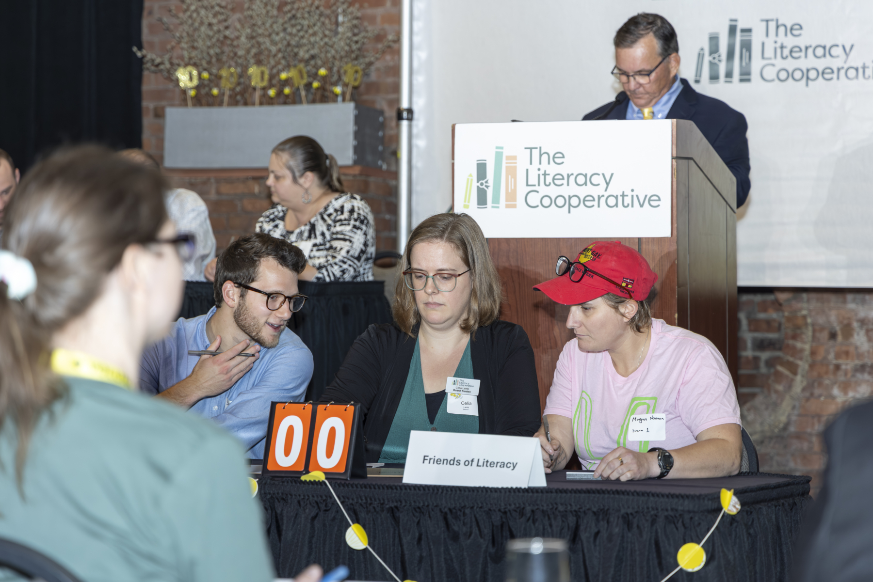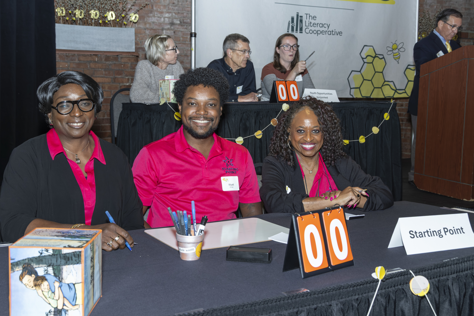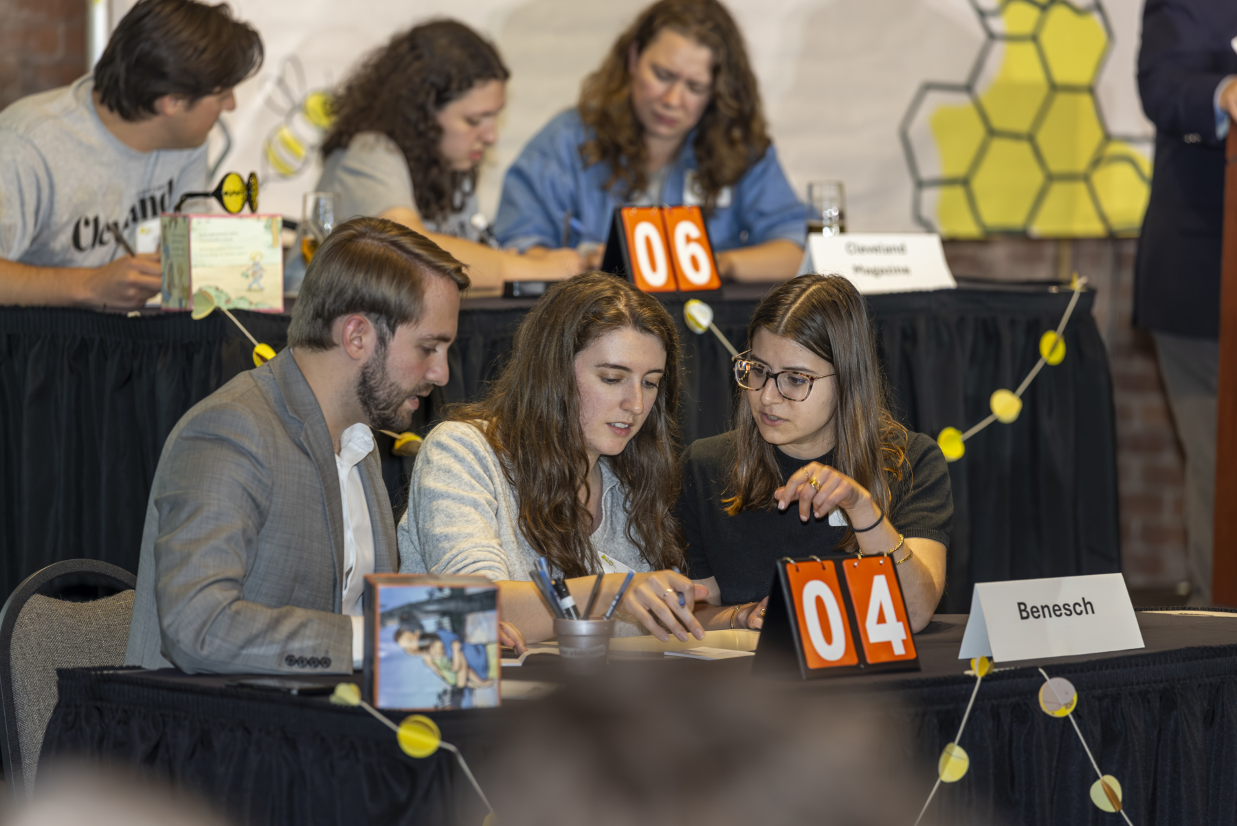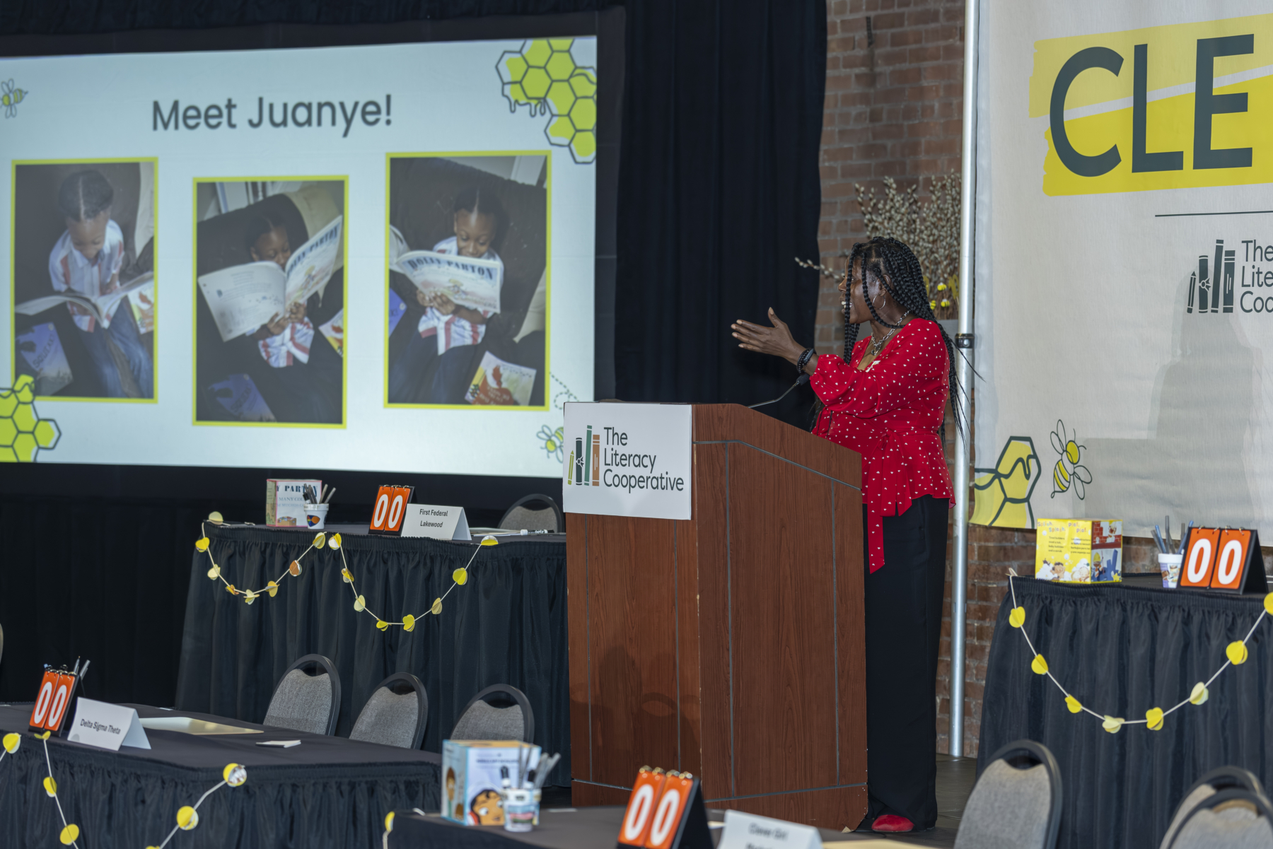 The evening began with a lively cocktail hour, setting a tone of excitement and camaraderie among the teams and guests. Board Chair Craig Dorn kicked off the main program with a warm welcome, emphasizing the collective impact of everyone in the room and introduced a video montage of the best memories from every CLE Bee since 2016. Watch it here! Bob Paponetti, President & CEO of The Literacy Cooperative, took the stage sharing Cuyahoga County’s troubling early literacy statistics and the organization’s solutions to address low literacy.