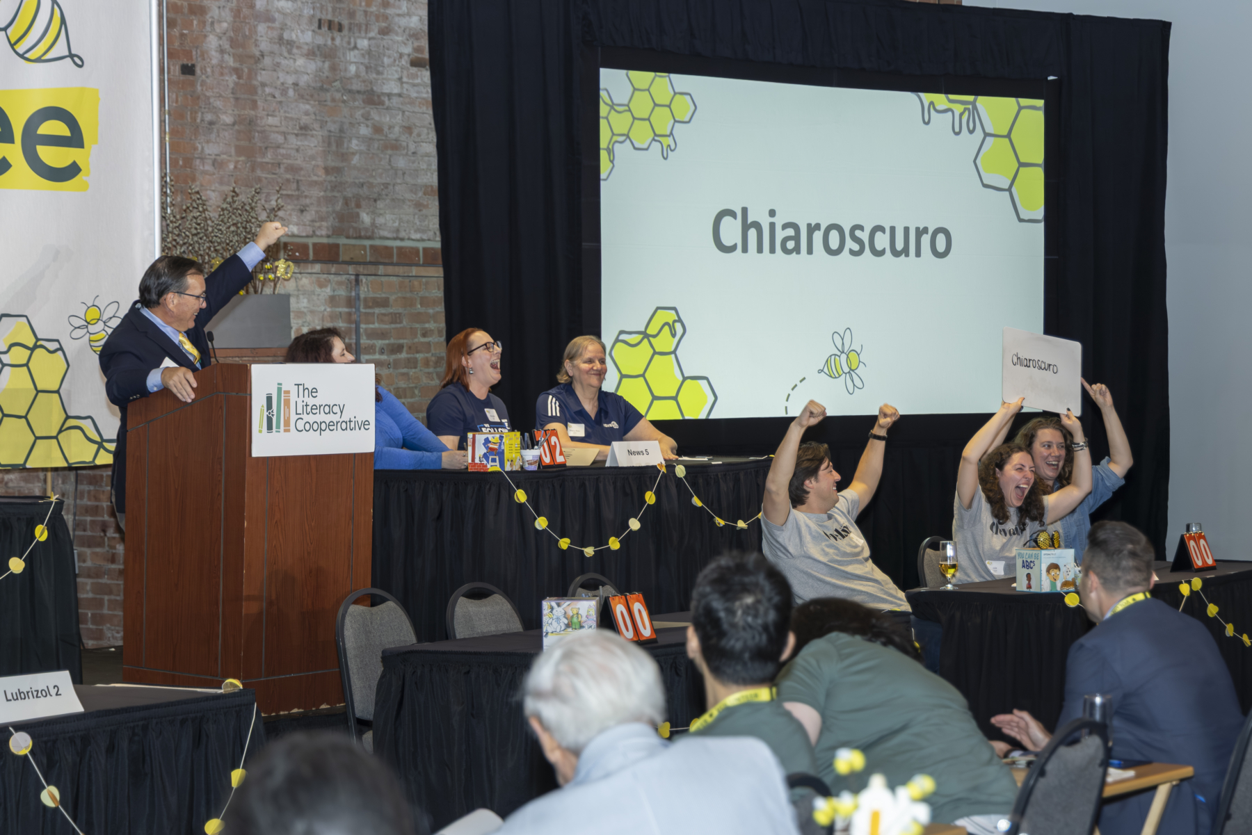 The competition floor was electric, thanks to Emcee Mike McIntyre, Judge John Russo, and word readers Jon Doss and Mike Snyder. They kept the energy high as teams battled it out over challenging words.